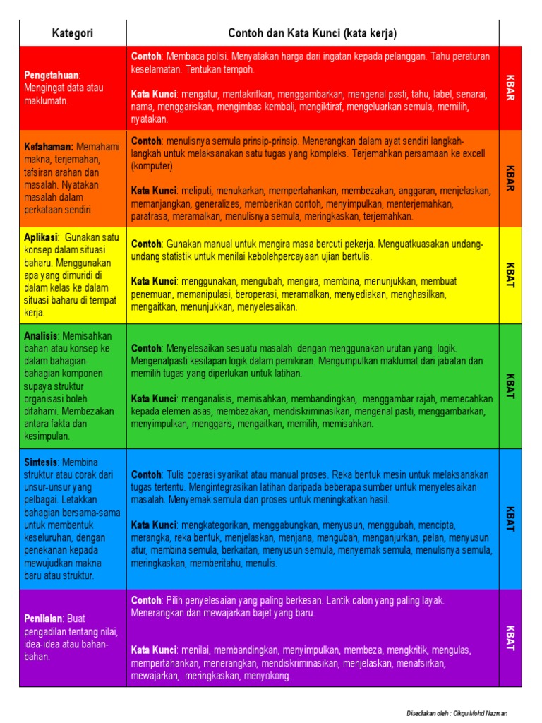 Contoh Ayat Untuk Komponen Taksonomi Bloom